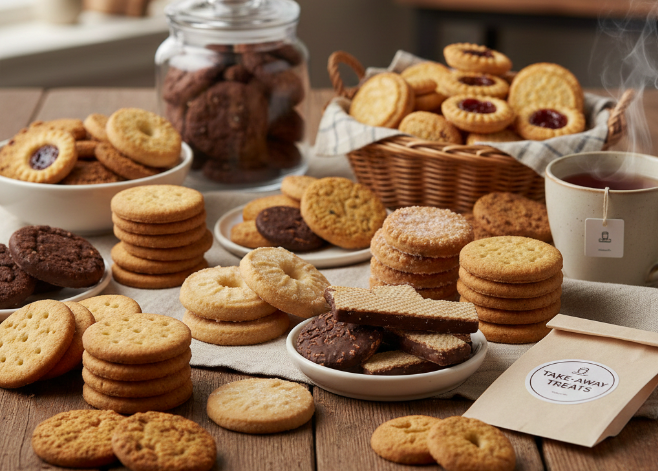 A wide range of popular biscuits available anytime. Perfect for snacks, tea time, or quick take-away needs.